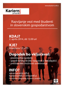 Projekt »Karierni zmenki« je dogodek, katerega namen je razvijati vezi med študenti in slovenskim gospodarstvom. Delodajalci imajo tako možnost na enem mestu srečati kader (študente), ki ga zaposlujejo in se jim tudi pobližje predstaviti, seznaniti z možnostmi zaposlovanja, izraziti svoja pričakovanja in vizijo te stroke. Študenti pa imajo tako možnost bolje spoznati stroko, ki ga gospodarstvo išče, rabi, zaposluje. Tovrstnega stika podjetje - študent primanjkuje, zato smo se odločili, da projekt podpremo in ga s sodelovanjem s Kariernimi centri, vodstvom fakultete, profesorji in študenti izpeljemo.